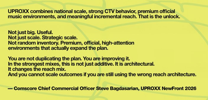 As Bagdasarian says, “That is the power of UPROXX: not just more reach, but more of the audience other media brands are missing.”