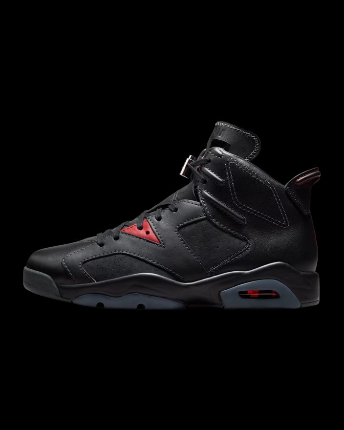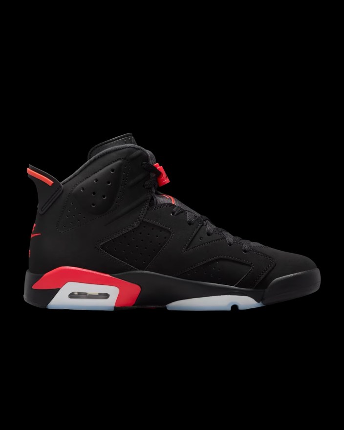The Air Jordan 6 Retro Infrared Salesman Black and Light Crimson is set to drop on February 14th for a retail price of $215. Pick up a pair via the Nike SNKRS app.